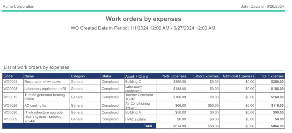 A CMMS provides this visibility by tracking every expense tied to an asset or task, including labor hours, parts used, and any additional charges.