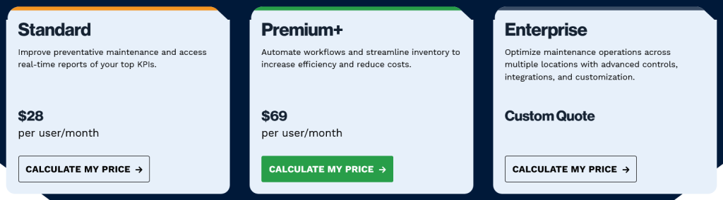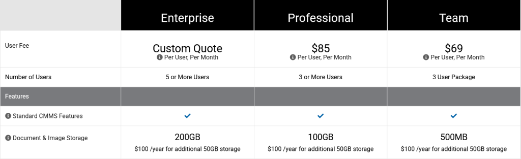 On the surface, eMaint’s pricing model looks straightforward: three plans based on user tiers.