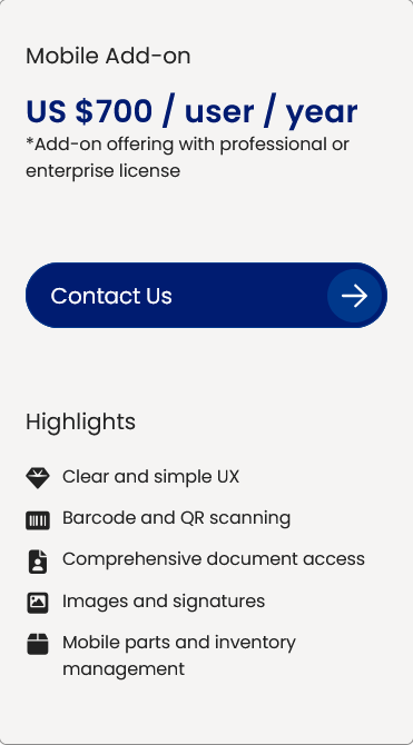 If you want to enable your technicians to manage work orders from the field, you’ll need to pay an additional $700 per user per year just for the mobile add-on ($58 per user per month, but the minimum contract is one year).