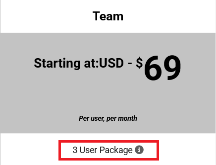 The Team plan starts at $33 per user per month and is designed for small teams of three.