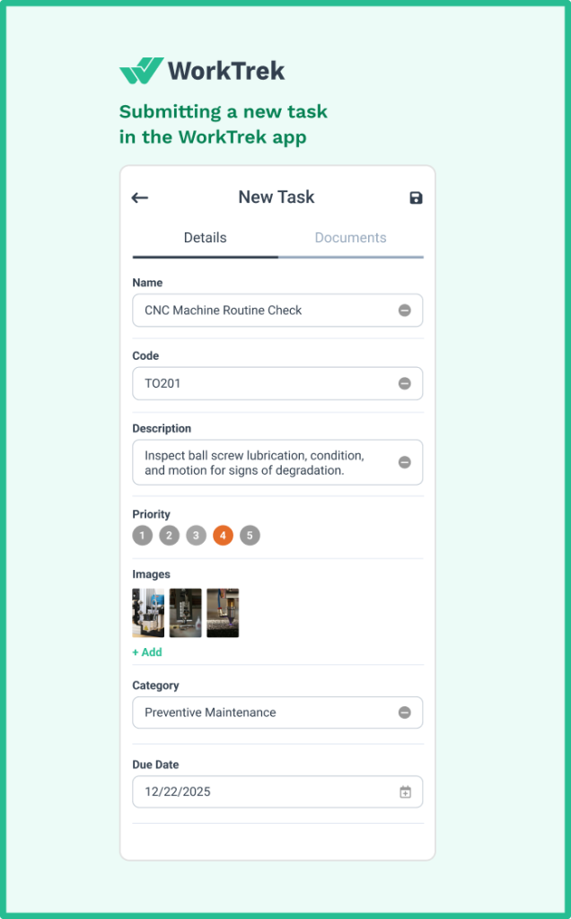 Whether you’re maintaining three CNC machines or three hundred, WorkTrek scales to fit. The same system that handles your milling machines also manages your lathes, grinders, and auxiliary equipment.