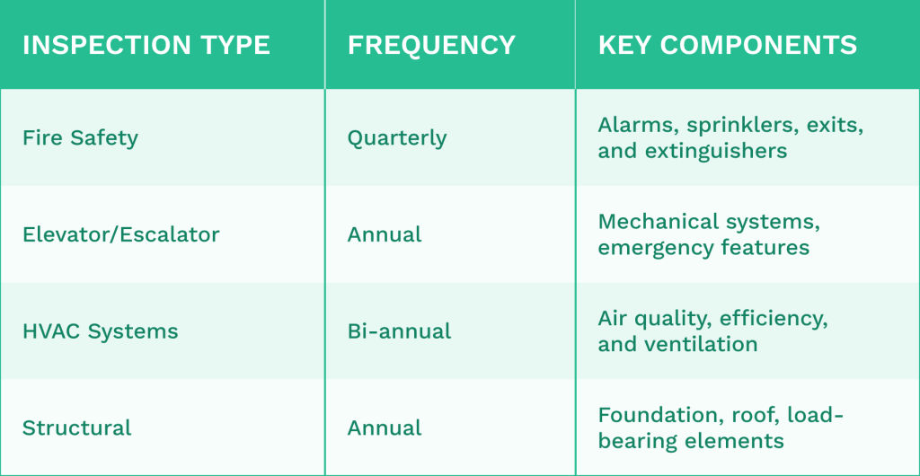 Part of a successful commercial property maintenance plan also includes regular inspections. Some of these inspections include: