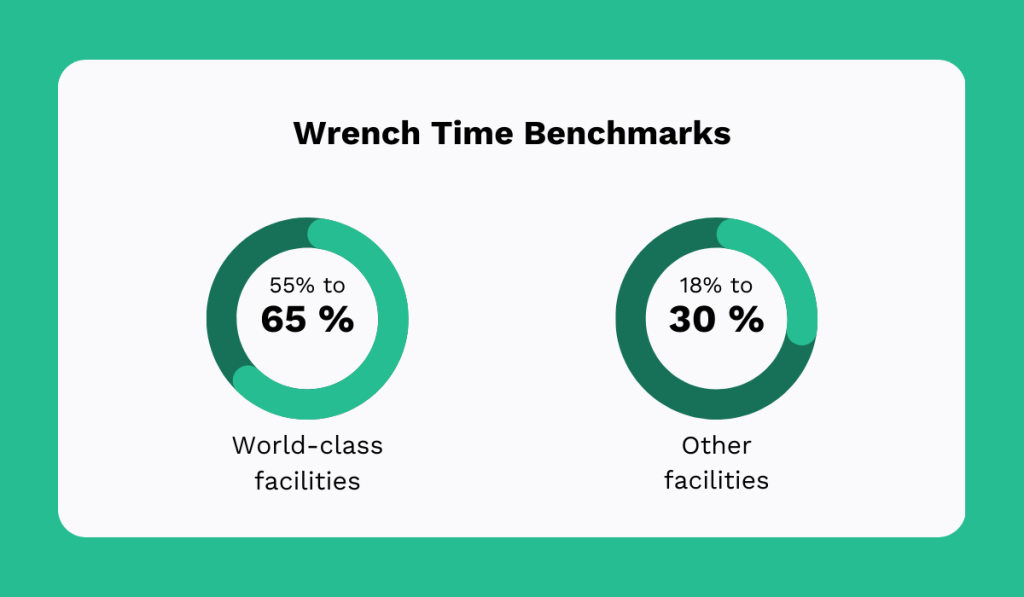 According to Reliable Plant, world-class organizations typically report wrench time between 55 and 65%, but most facilities operate closer to 20 or 30% in practice.