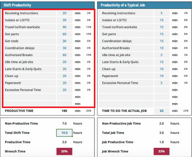 Comparing your wrench time to this benchmark helps you see inefficiencies.