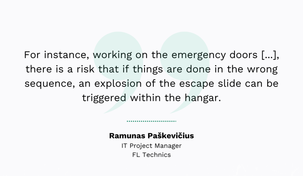Ramunas Paškevičius, IT Project Manager at FL Technics, says they use VR to prepare mechanics for potentially dangerous tasks: