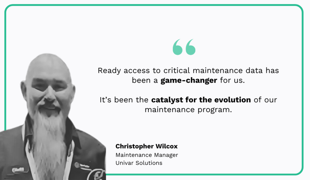 Christopher Wilcox, Maintenance Manager at Univar Solutions, points out that one of the most transformative aspects of CMMS adoption is easy access to real-time maintenance data.