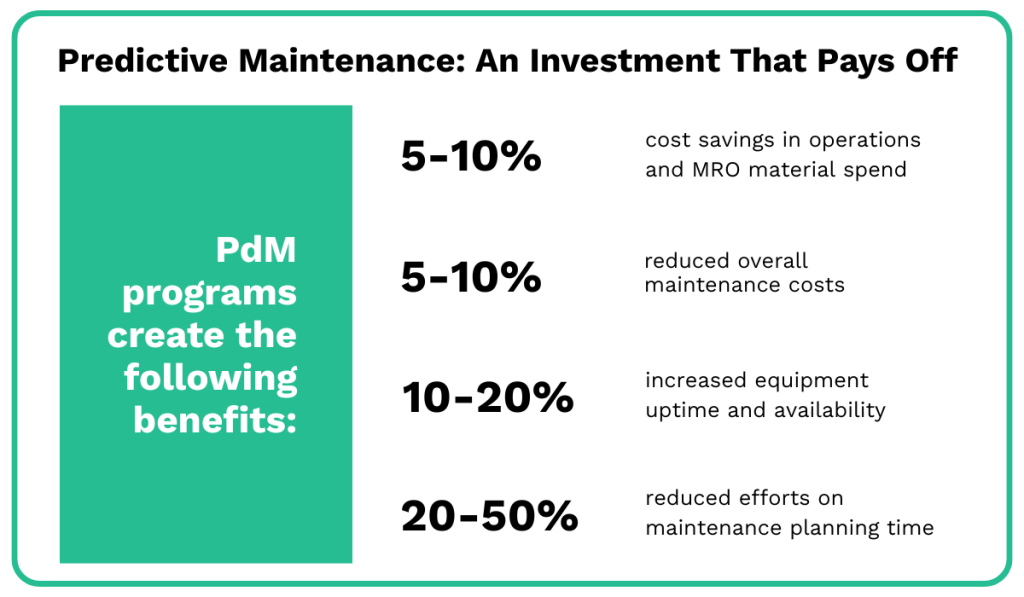 This promising statistic comes from Deloitte’s Position Paper on Predictive Maintenance (PdM).