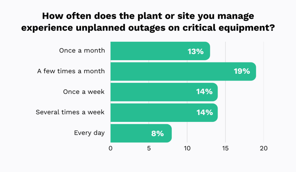 Despite the high frequency of unplanned outages, 21% of respondents still rely on reactive, run-to-failure maintenance.