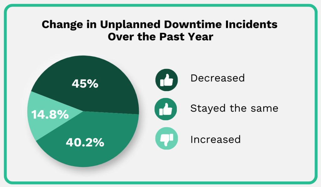 Even more telling, only 14.8% reported an increase in unplanned downtime, suggesting that most organizations are moving in the right direction.