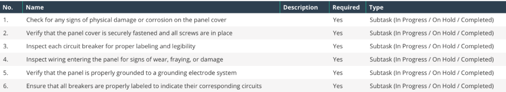 Here’s a look at part of the electrical panel inspection checklist above: