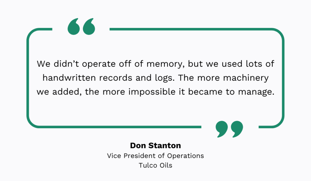 Before implementing this technology, Tulco Oils faced significant challenges in tracking and managing maintenance schedules as its asset portfolio grew.