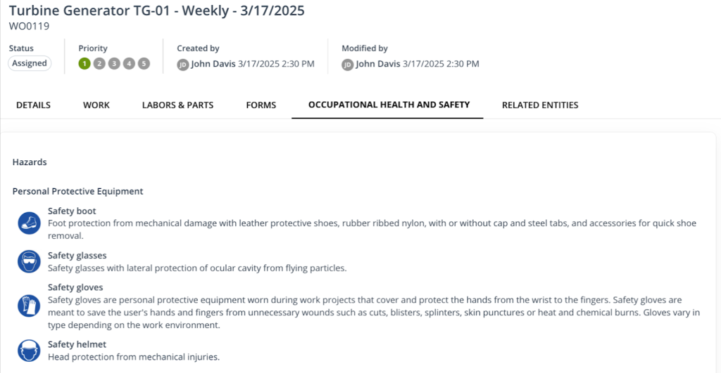 For example, our CMMS, WorkTrek, enables users to upload safety rules and set reminders about potential hazards in the field.