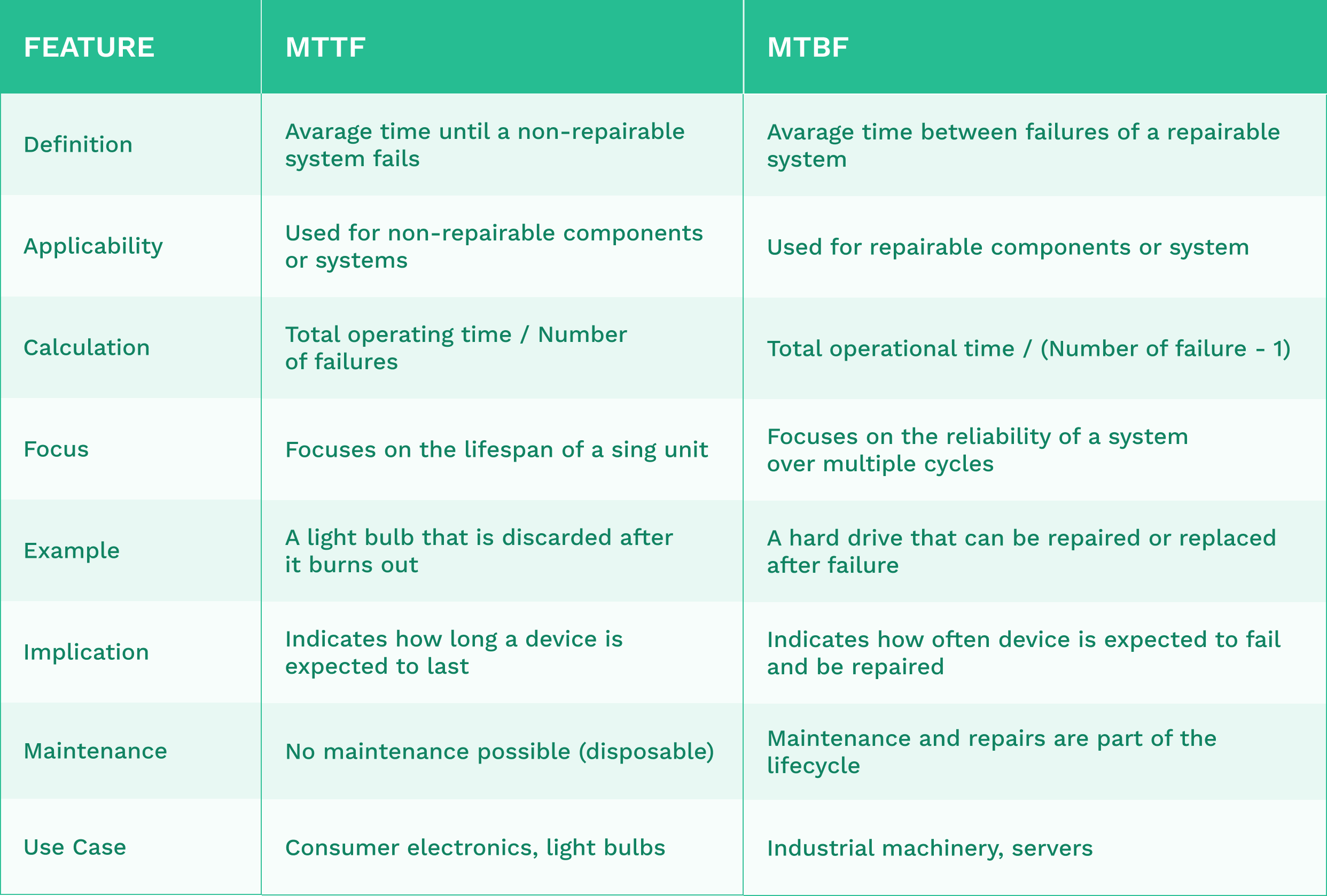 MTTF and MTBF are similar but have key differences: