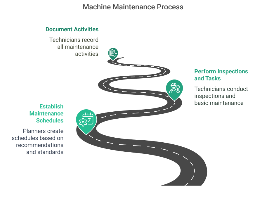 First, planners establish standard maintenance schedules based on manufacturer recommendations, industry standards, and historical experience. For example, they might set up monthly bearing lubrication, quarterly belt inspections, and annual comprehensive equipment reviews.