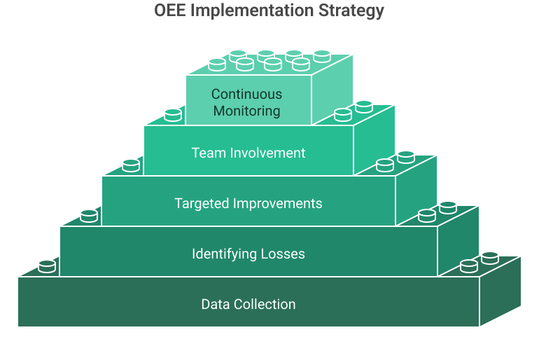 Following these steps, you can effectively implement OEE in your manufacturing process, leading to better equipment effectiveness, reduced waste, and higher productivity.