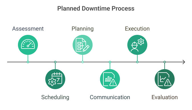 To implement planned downtime effectively, companies typically follow a structured approach: