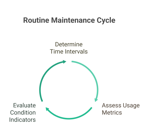 Consider how a car might need an oil change every 5,000 miles rather than every six months. This approach makes particular sense for equipment where wear is directly related to use.
